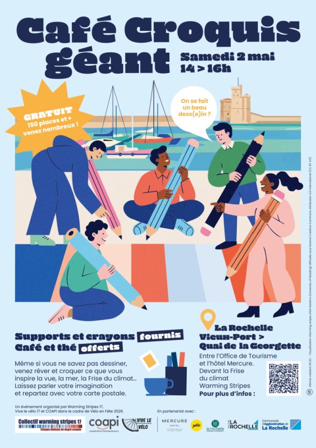Un événement porté par le Collectif Warming Stripes 17 et Coapi – coopérative d'entrepreneur·e·s, Vive le Vélo avec le soutien de La Rochelle Agglo et de la Ville de La Rochelle dans le cadre de Vélo en fête